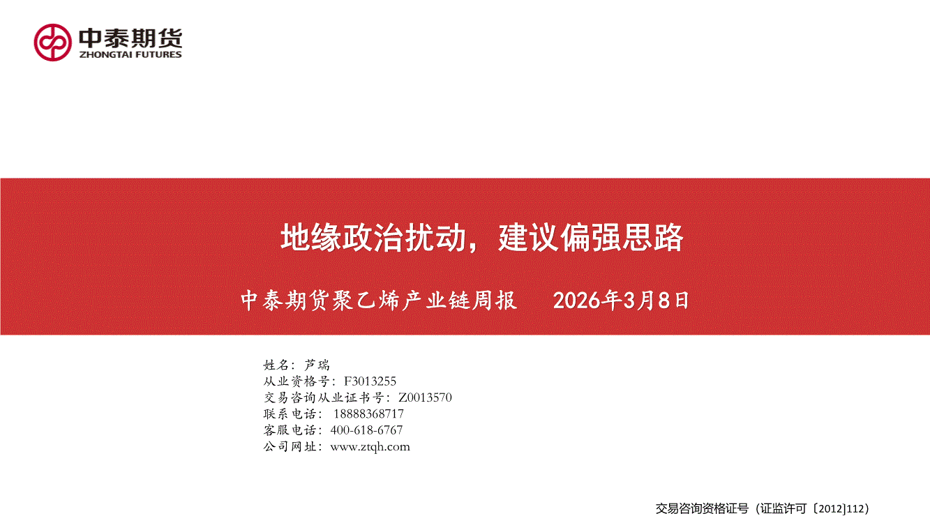 中泰期货-聚乙烯产业链周报:地缘政治扰动,建议偏强思路-260308