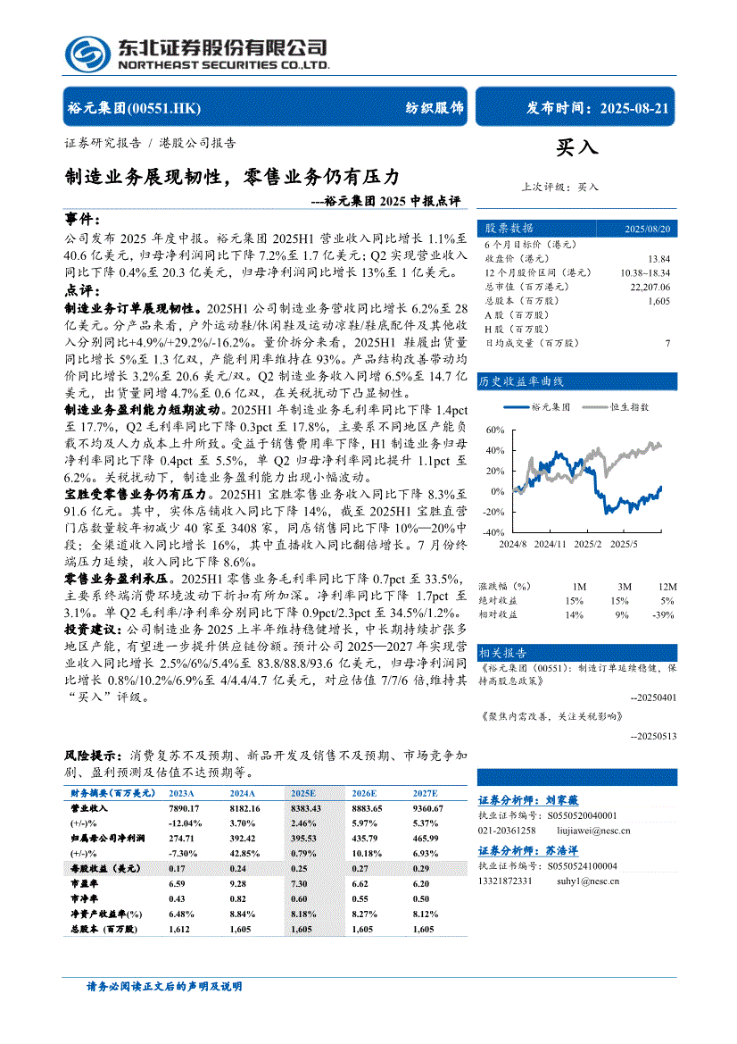 裕元集团:东北证券-裕元集团-0551.HK-2025中报点评:制造业务展现韧性,零售业务仍有压力-250821