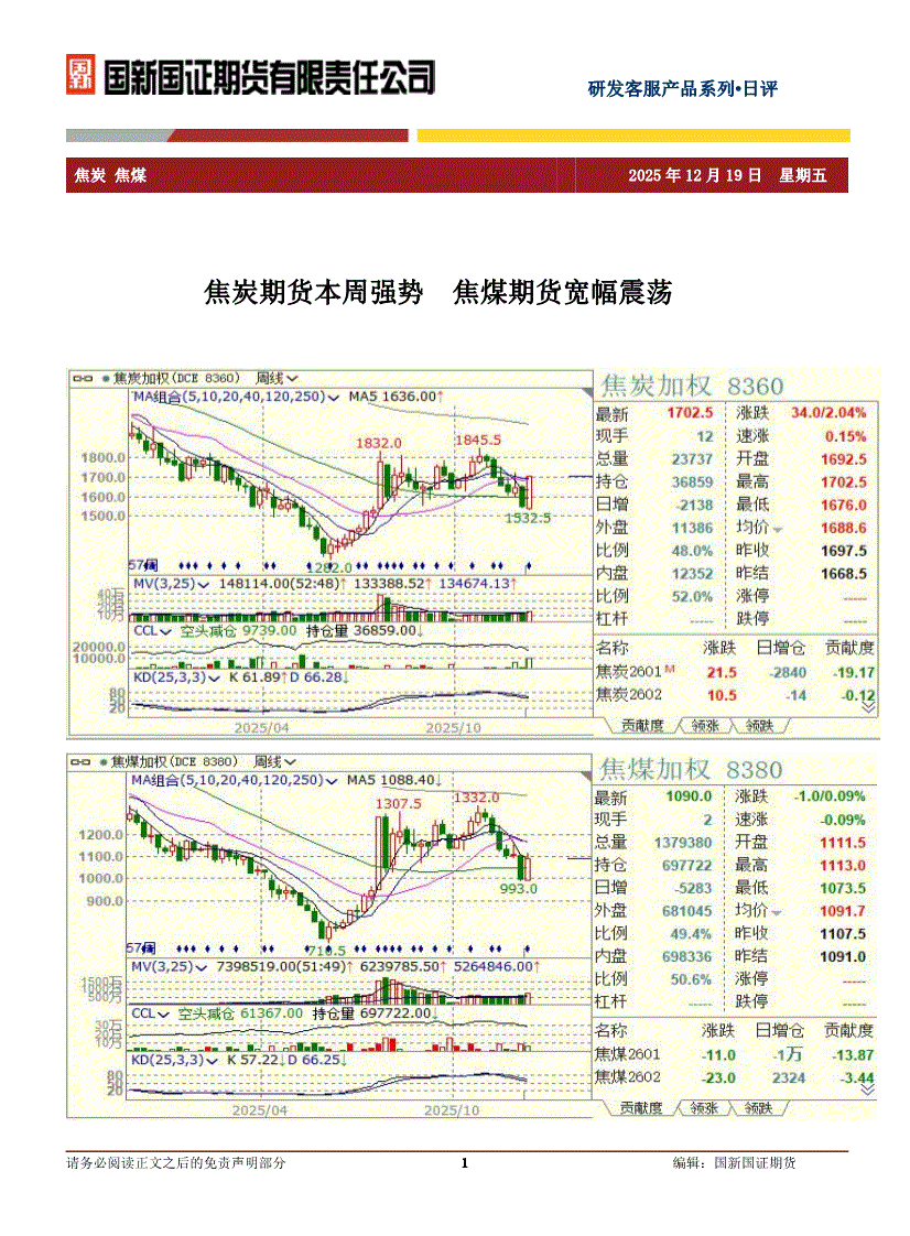国新国证期货-焦炭焦煤日评:焦炭期货本周强势,焦煤期货宽幅震荡-251219