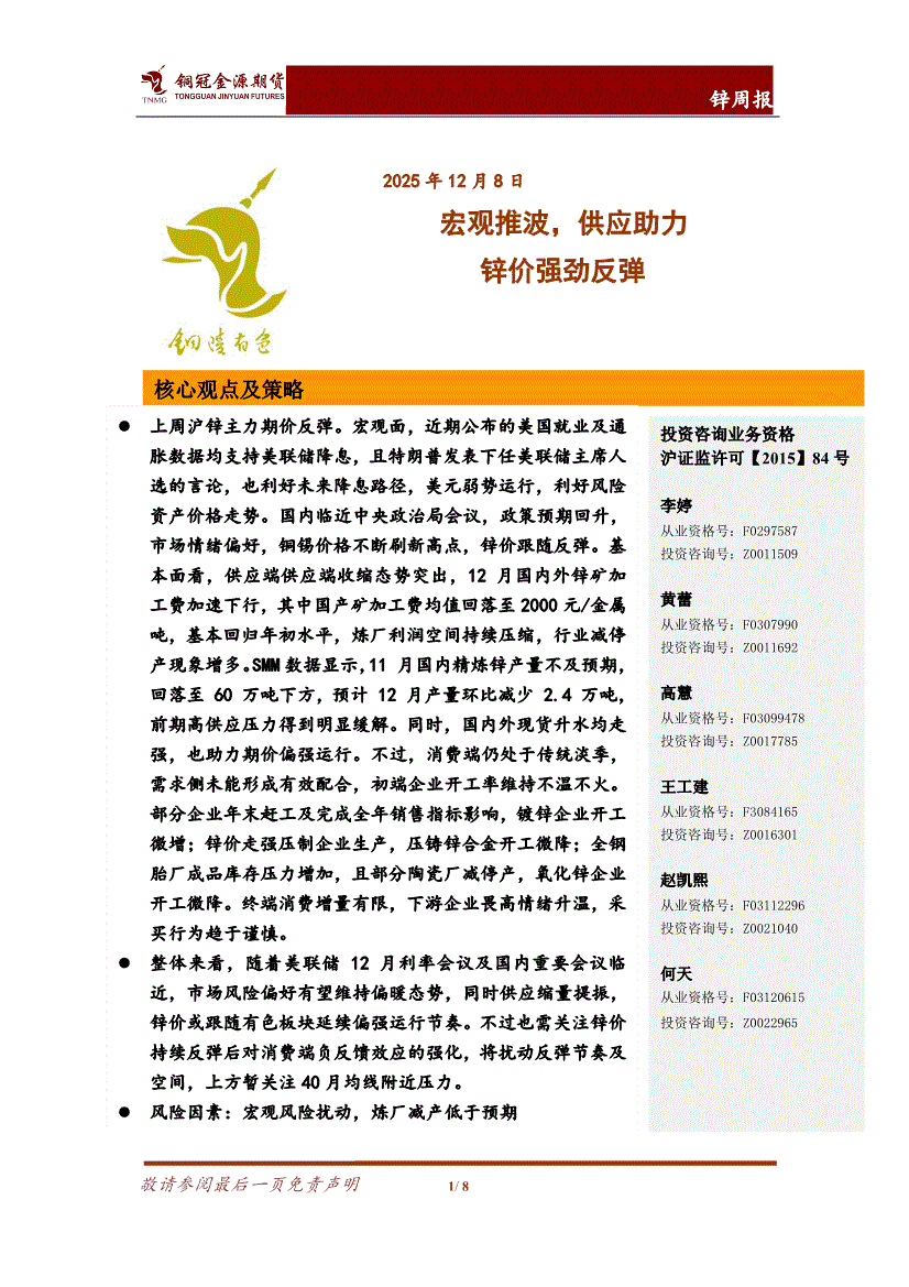 铜冠金源期货-锌周报:宏观推波,供应助力锌价强劲反弹-251208