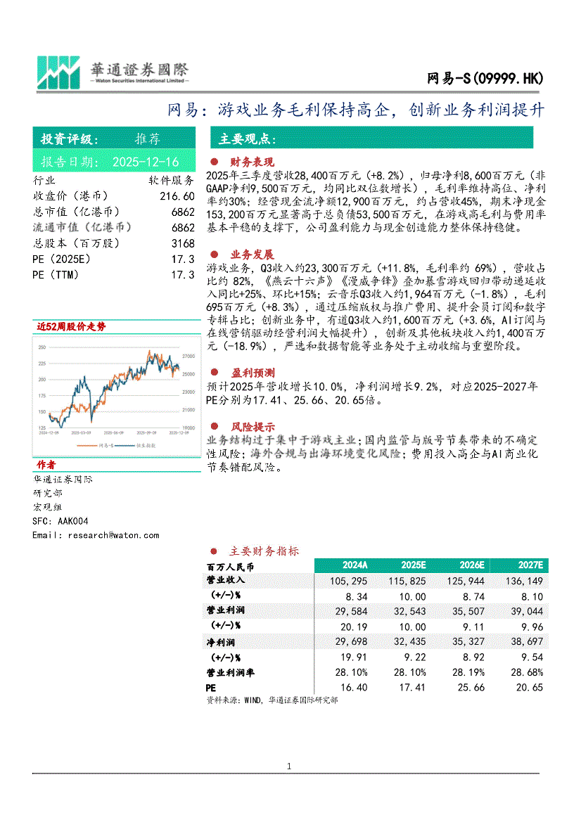 网易~S:华通证券国际-网易~S-9999.HK-游戏业务毛利保持高企,创新业务利润提升-251216