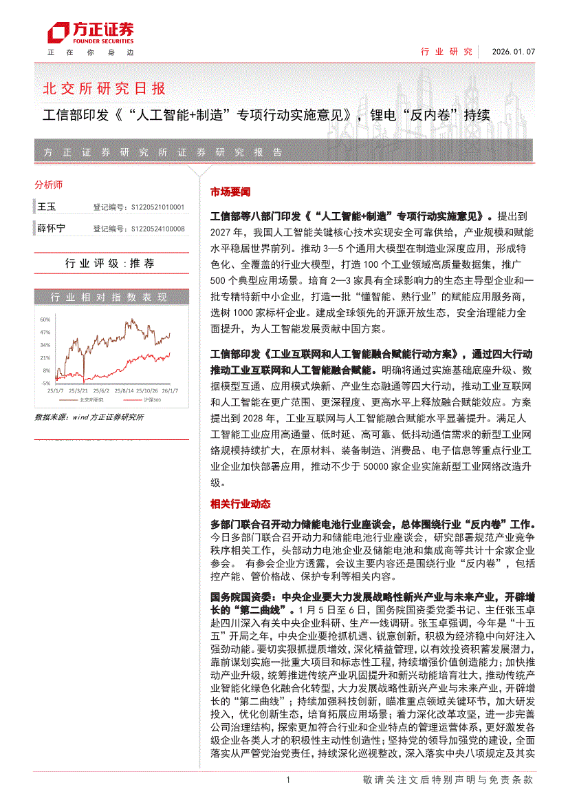 方正证券-北交所研究日报:工信部印发《“人工智能+制造”专项行动实施意见》,锂电“反内卷”持续-260107
