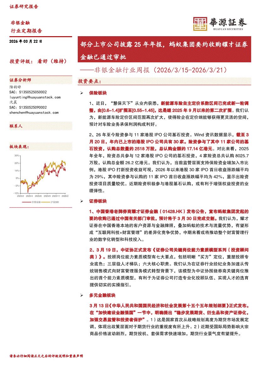 非银金融行业:华源证券-非银金融行业周报:部分上市公司披露25年年报,蚂蚁集团要约收购耀才证券金融已通过审批-260322