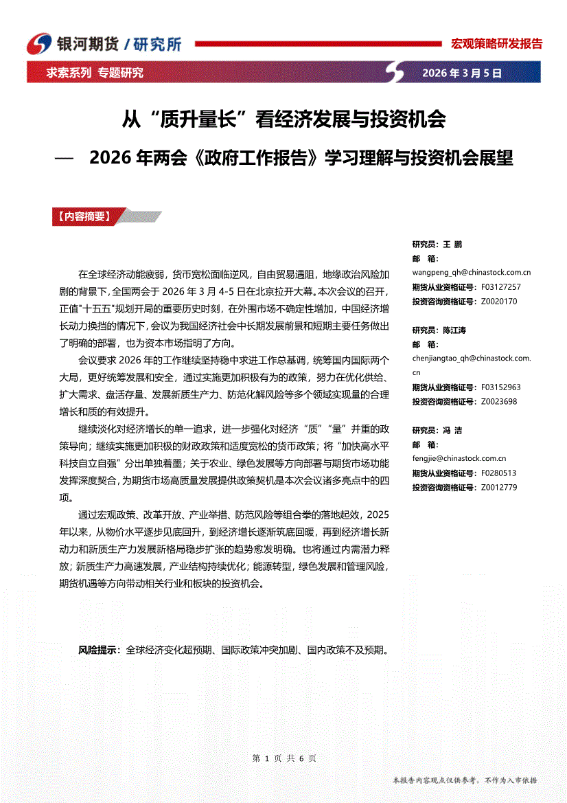 银河期货-2026年两会《政府工作报告》学习理解与投资机会展望:从“质升量长”看经济发展与投资机会-260305