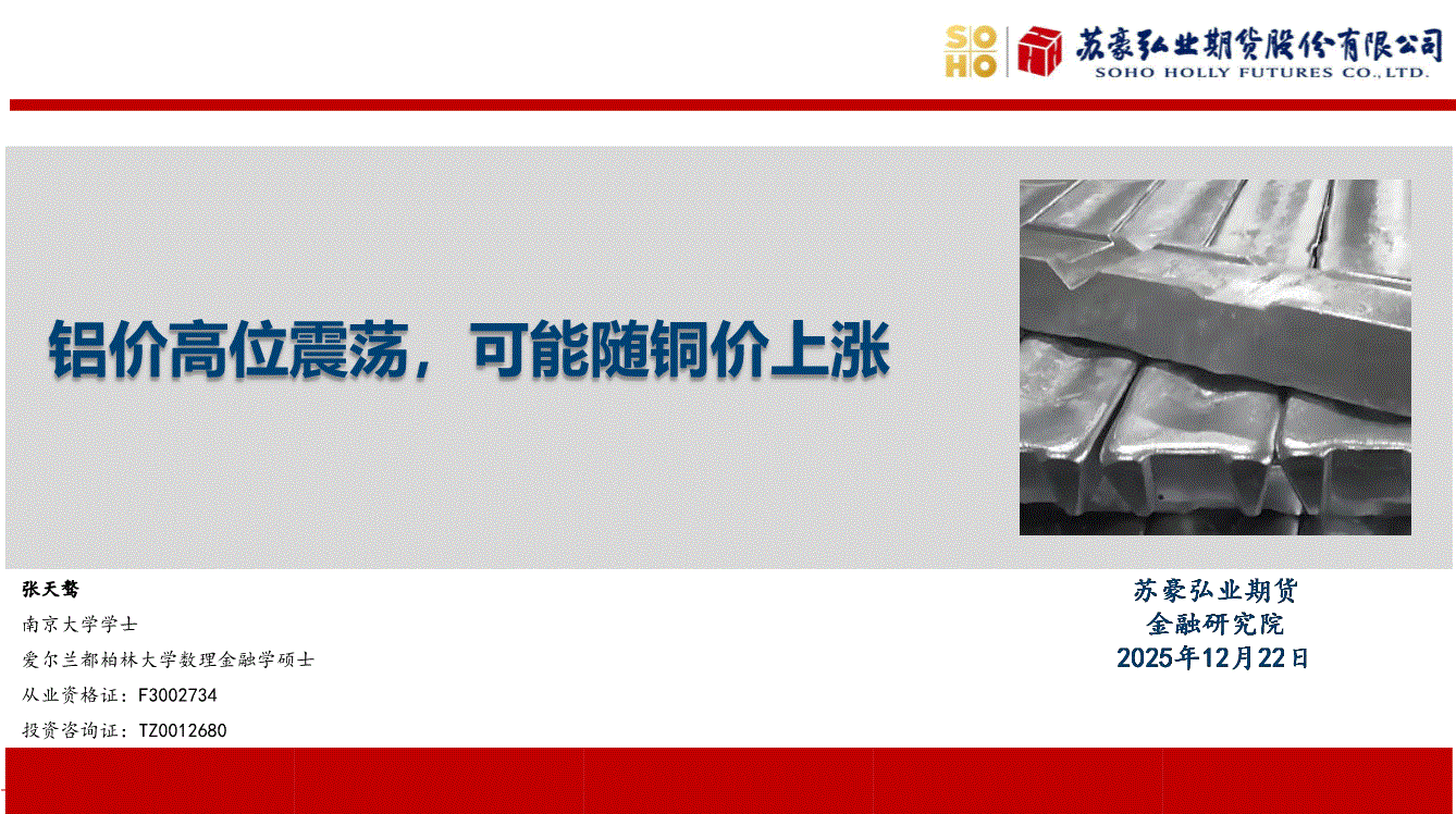 弘业期货-铝价高位震荡,可能随铜价上涨-251222