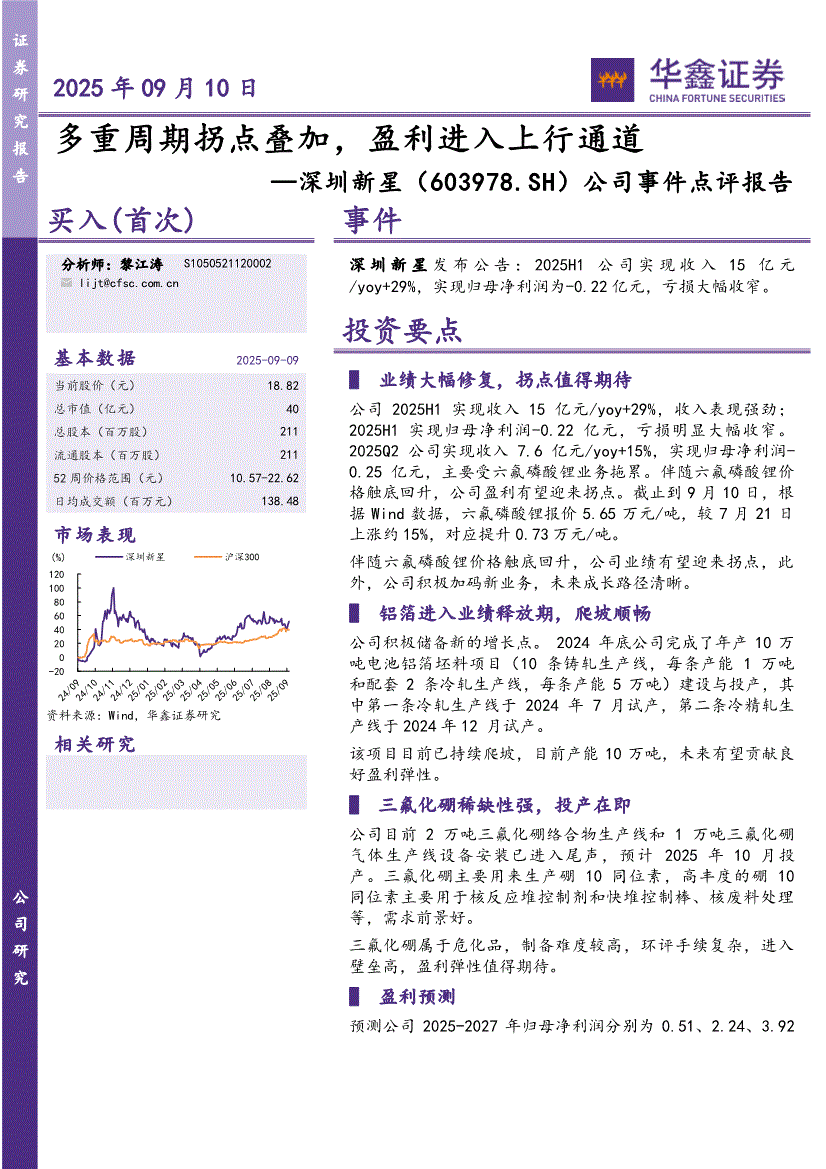 深圳新星:华鑫证券-深圳新星-603978-公司事件点评报告:多重周期拐点叠加,盈利进入上行通道-250910
