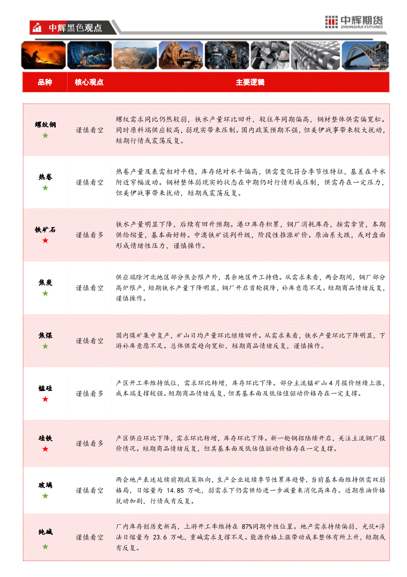 中辉期货-技术分析看黑色周报:铁矿领涨均收阳,双焦中阳材大涨-260315
