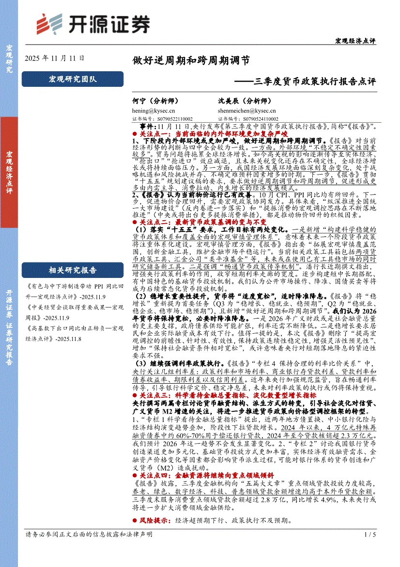 开源证券-三季度货币政策执行报告点评:做好逆周期和跨周期调节-251111