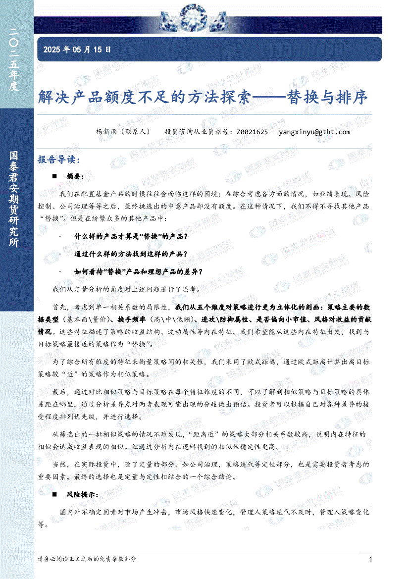国泰君安期货-解决产品额度不足的方法探索——替换与排序-250515