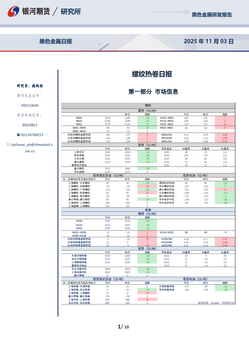 银河期货-钢材:铁水产量收缩,钢价区间震荡-251108