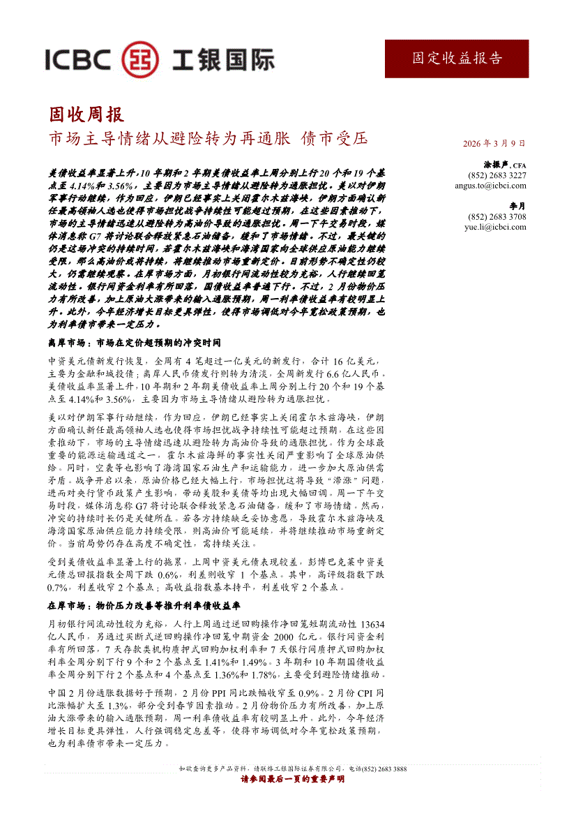 工银国际-固收周报:市场主导情绪从避险转为再通胀债市受压-260309