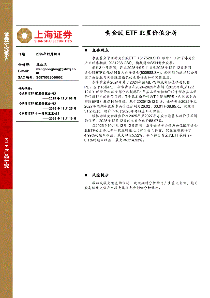 上海证券-黄金股ETF配置价值分析-251218