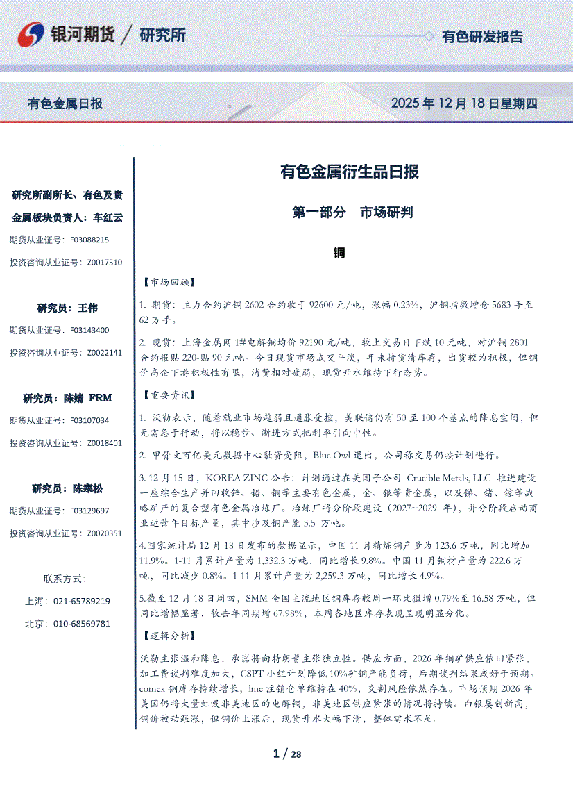 银河期货-有色金属衍生品日报-251218