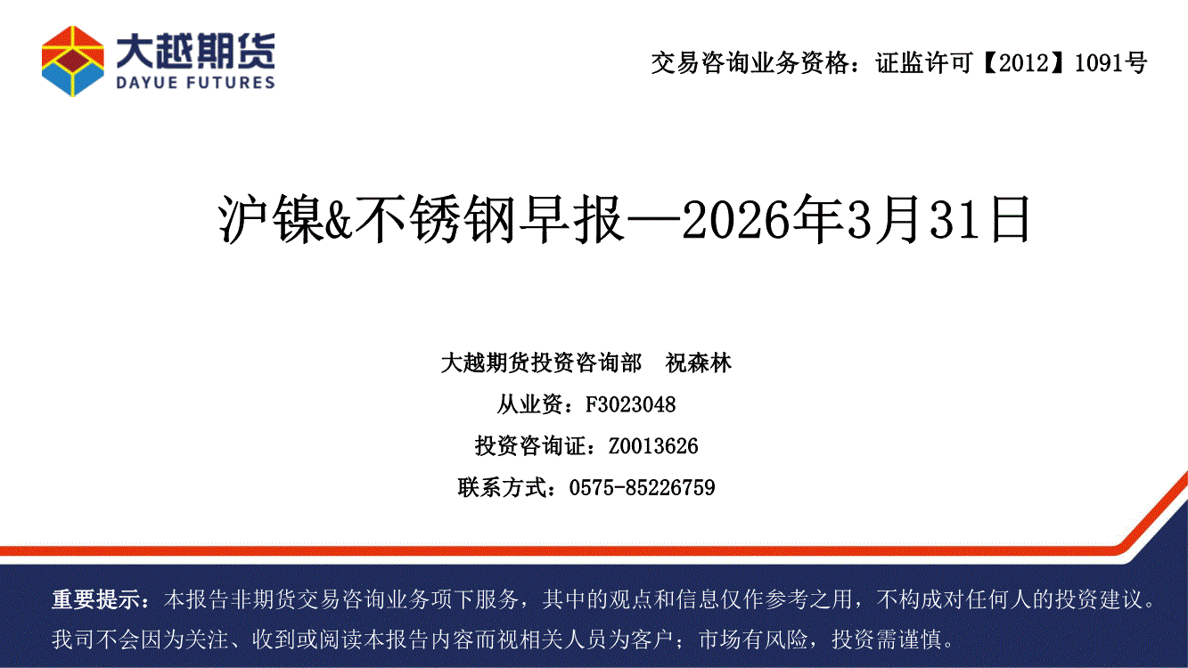 大越期货-沪镍&不锈钢早报-260331