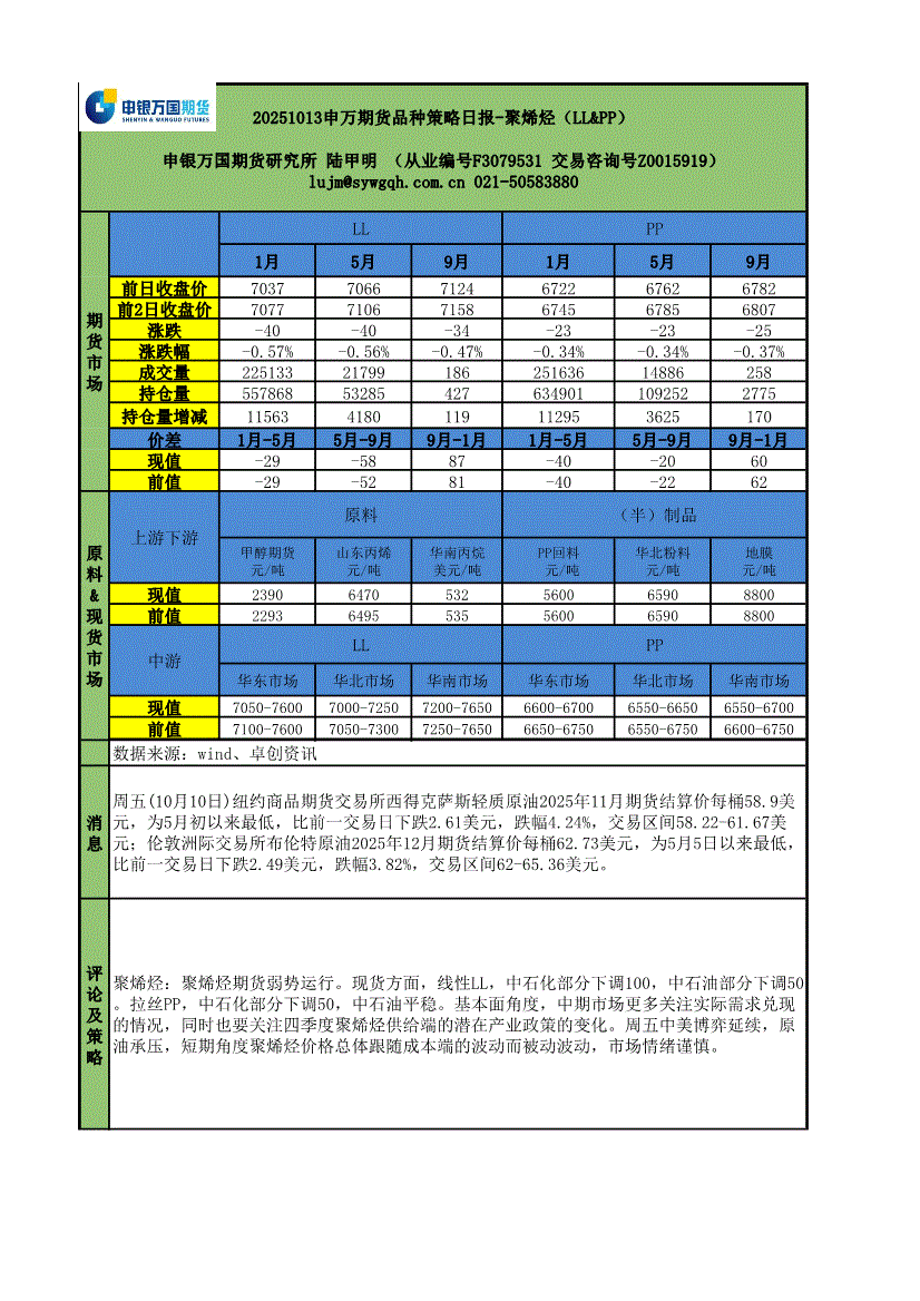 申银万国期货-品种策略日报~聚烯烃(LL&PP)-251013