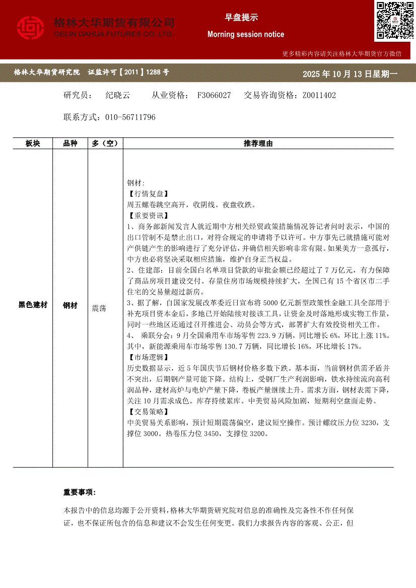 格林大华期货-早盘提示:焦煤、焦炭-251010