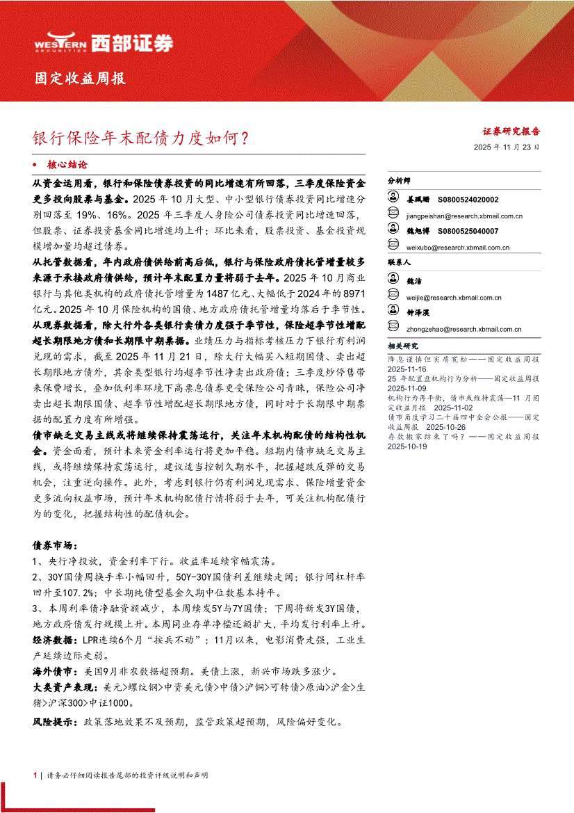 西部证券-固定收益周报:银行保险年末配债力度如何?-251123