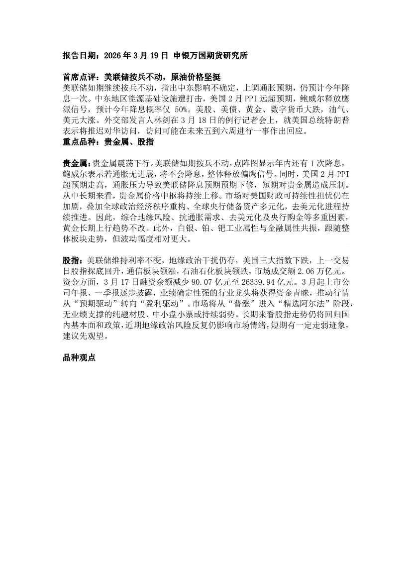 申银万国期货-早间评论-260319