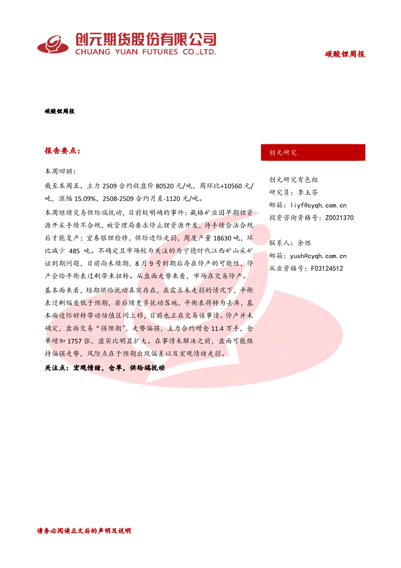 创元期货-碳酸锂周报:供给扰动未结束-250803