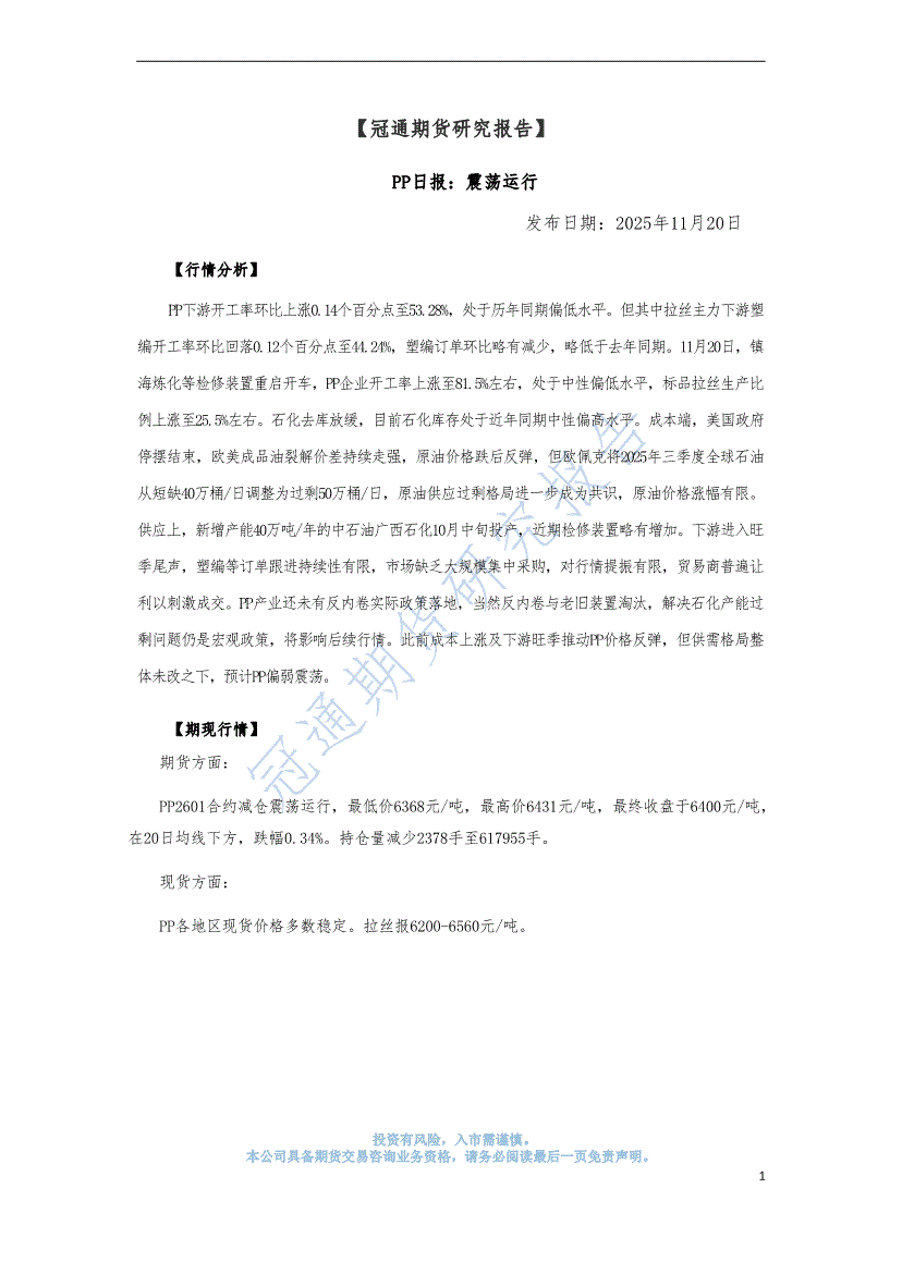冠通期货-PP日报:震荡下行-251121