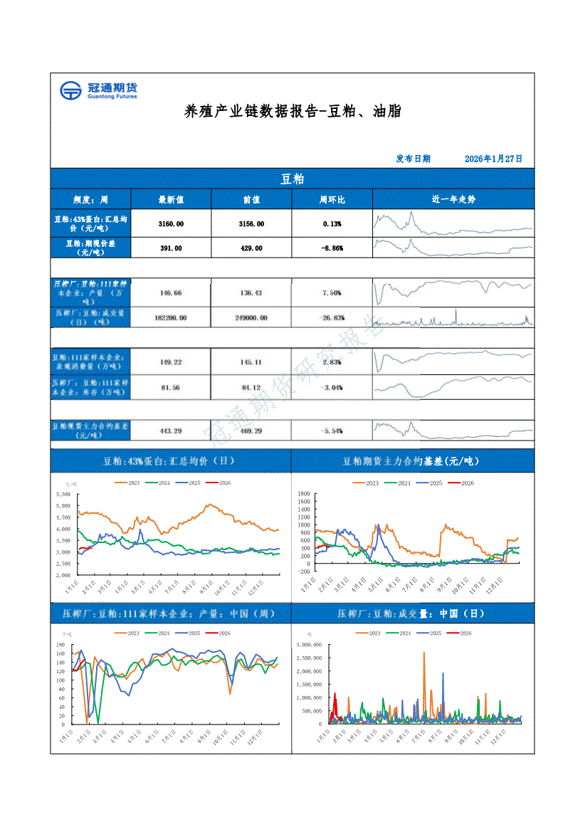 冠通期货-养殖产业链数据报告:豆粕、油脂-260127