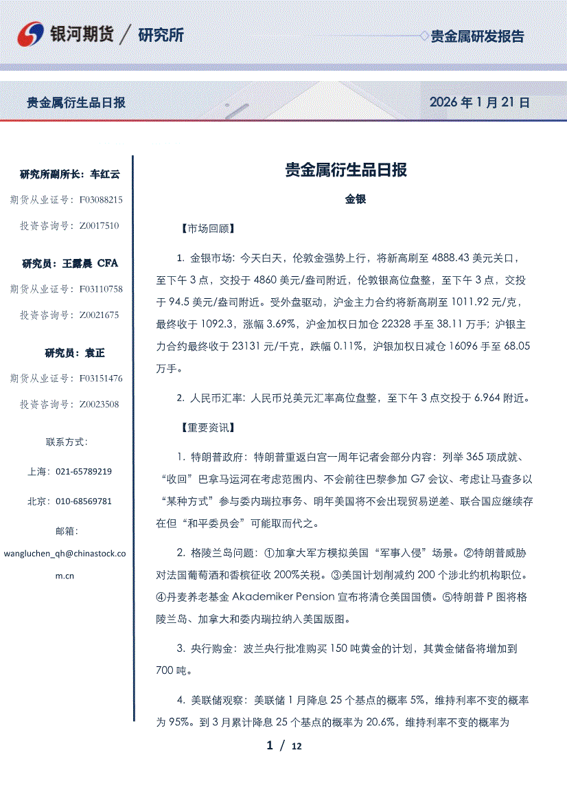 银河期货-贵金属衍生品日报-260121