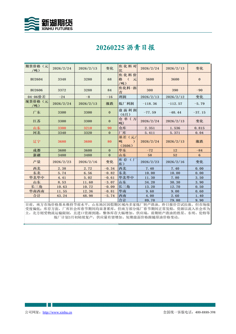 新湖期货-沥青日报-260225