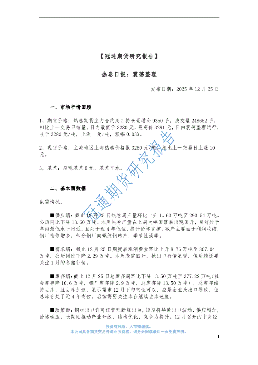 冠通期货-热卷日报:震荡整理-251225