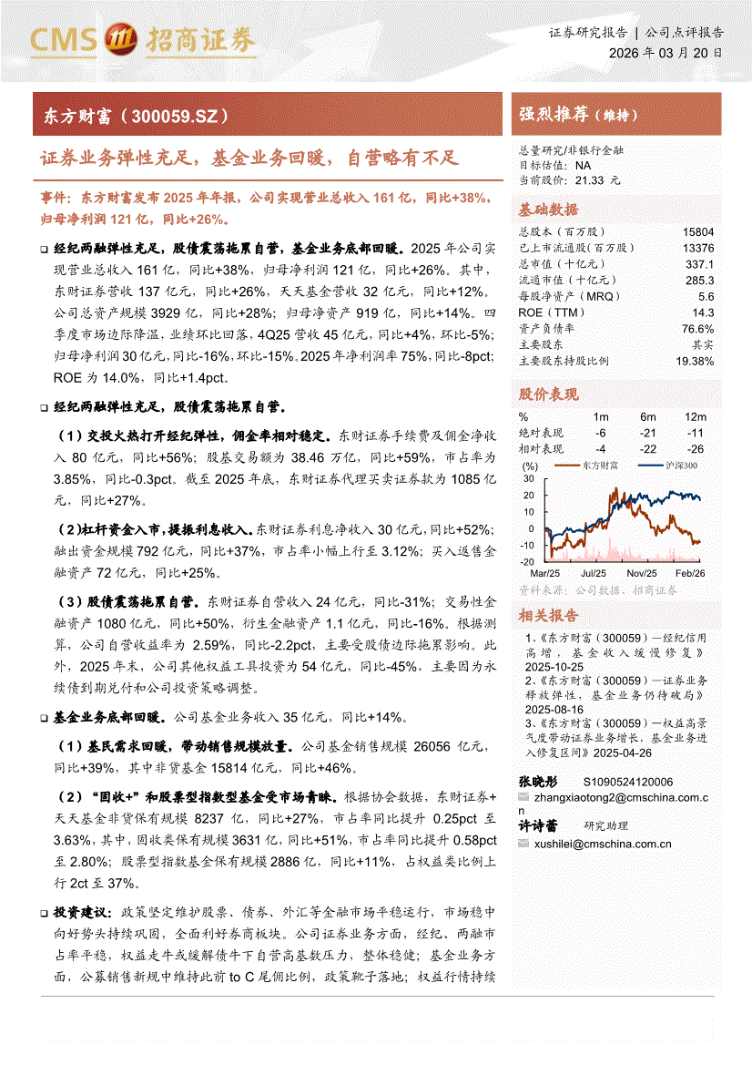 东方财富:招商证券-东方财富-300059-证券业务弹性充足,基金业务回暖,自营略有不足-260320