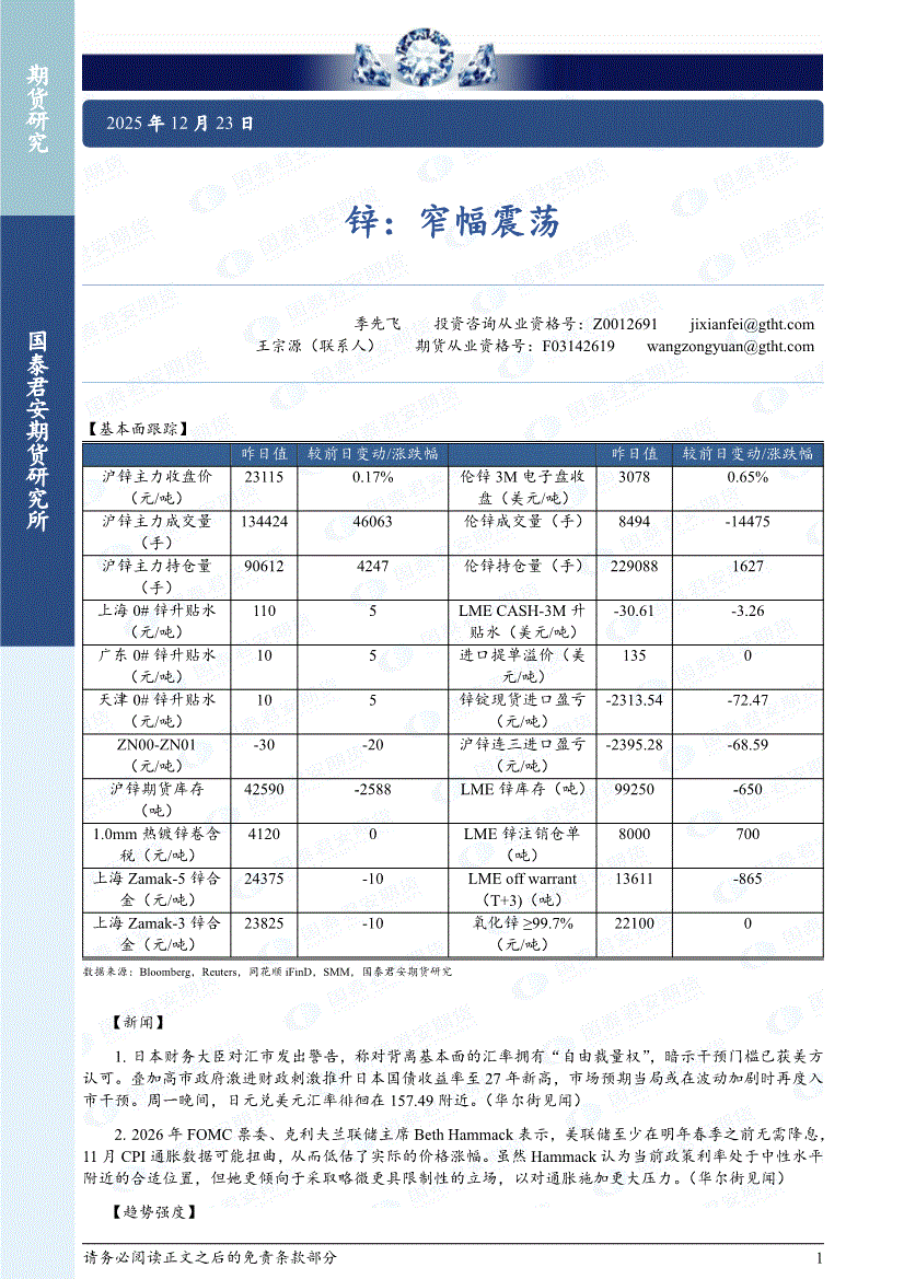 国泰君安期货-铜:美元回落,价格上涨-251223