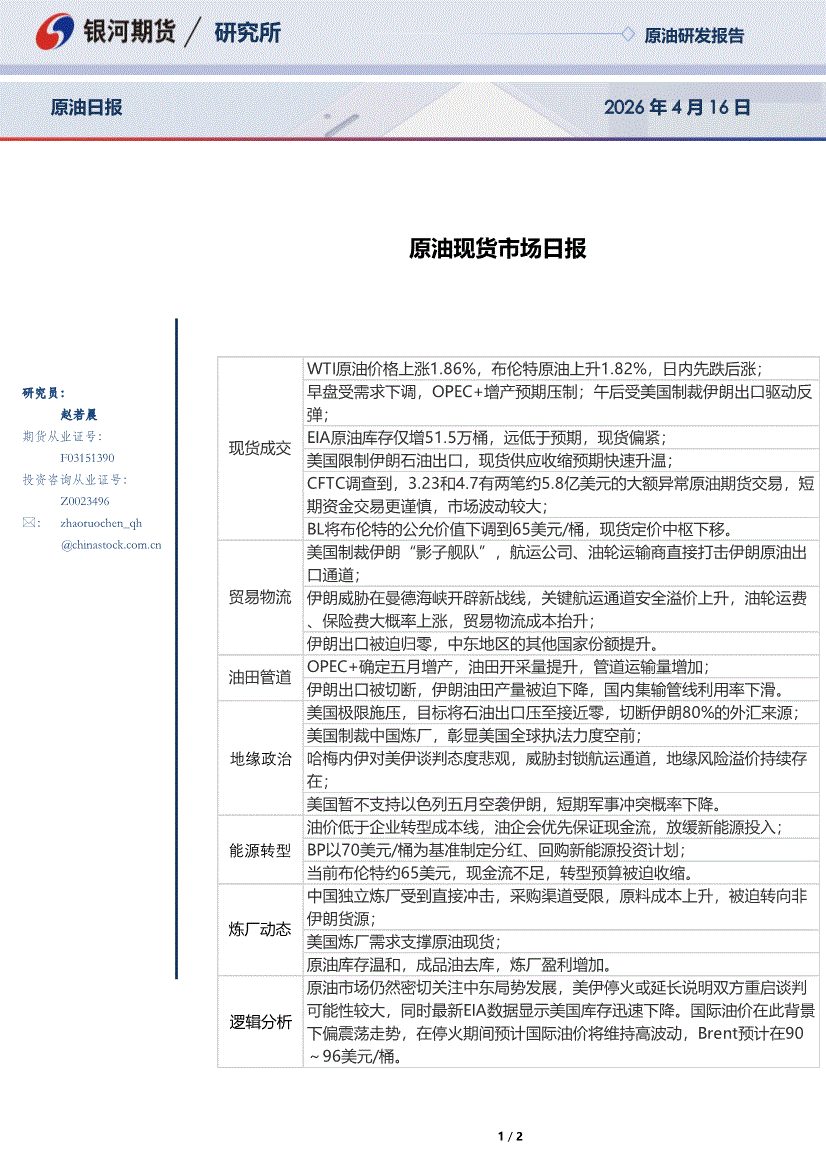 银河期货-原油现货市场日报-260416