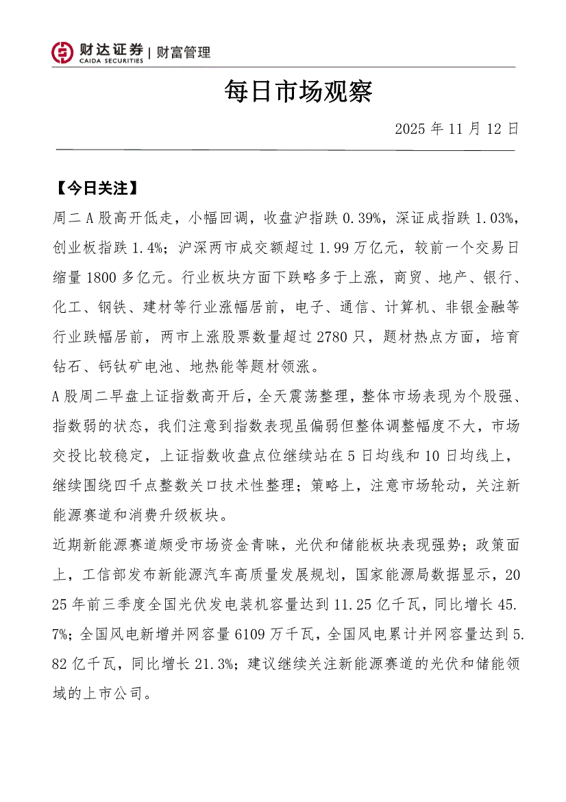 财达证券-每日市场观察-251112