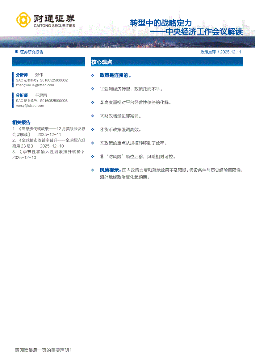 财通证券-中央经济工作会议解读:转型中的战略定力-251211