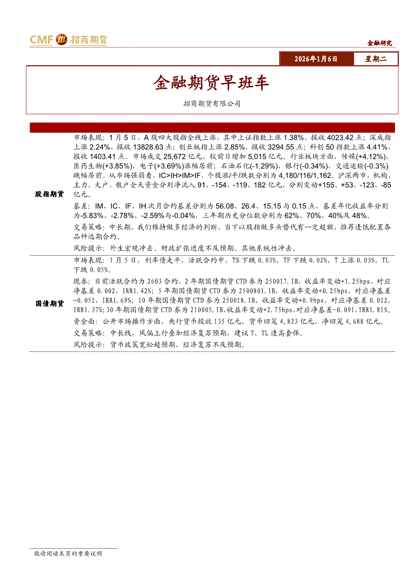 招商期货-金融期货早班车-260106