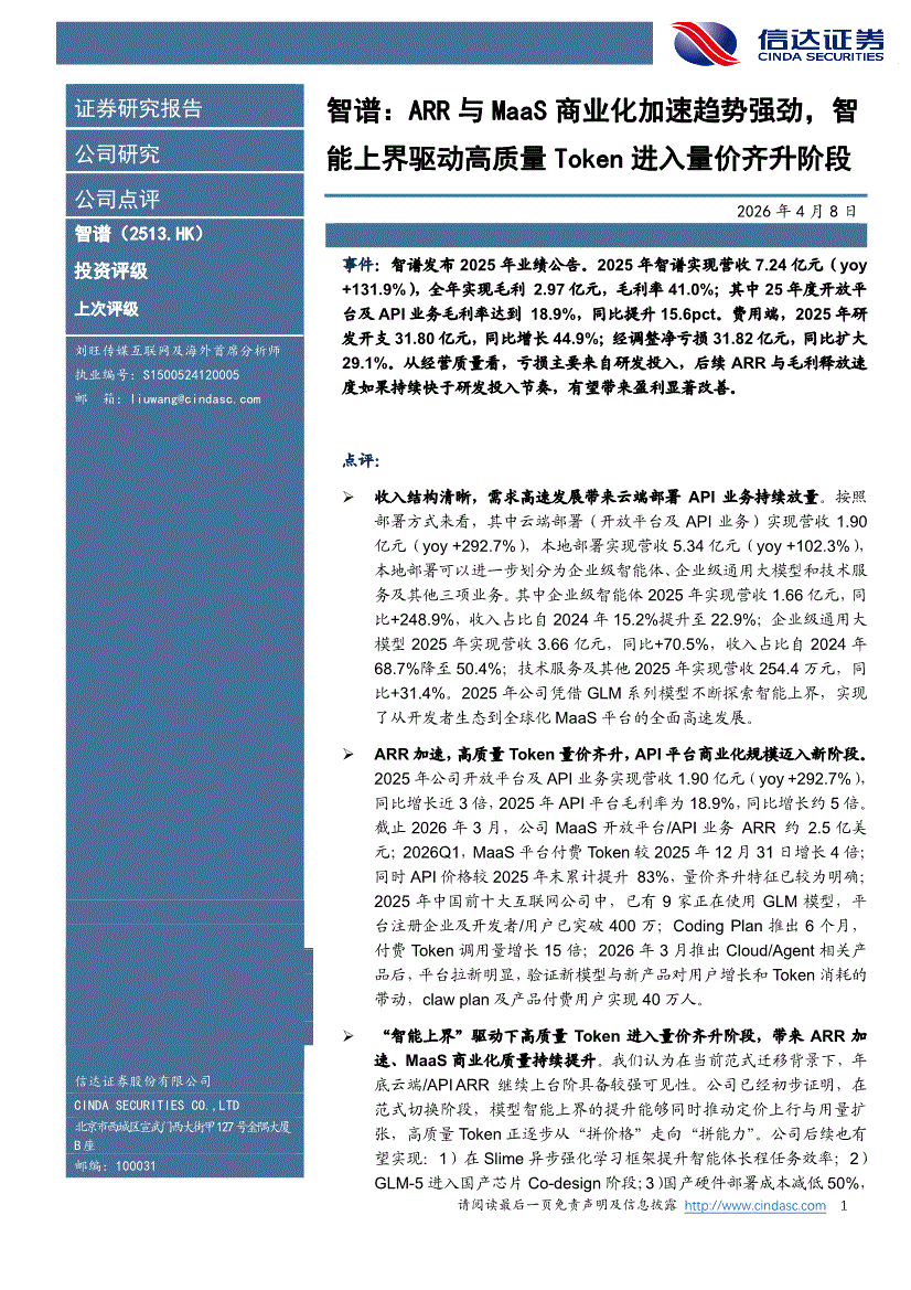 智谱:信达证券-智谱-2513.HK-ARR与MaaS商业化加速趋势强劲,智能上界驱动高质量Token进入量价齐升阶段-260408
