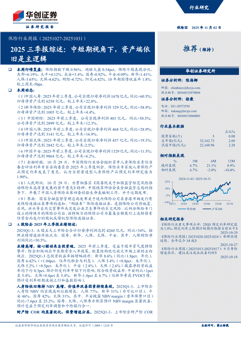 保险行业:华创证券-保险行业周报:2025三季报综述,中短期视角下,资产端依旧是主逻辑-251102