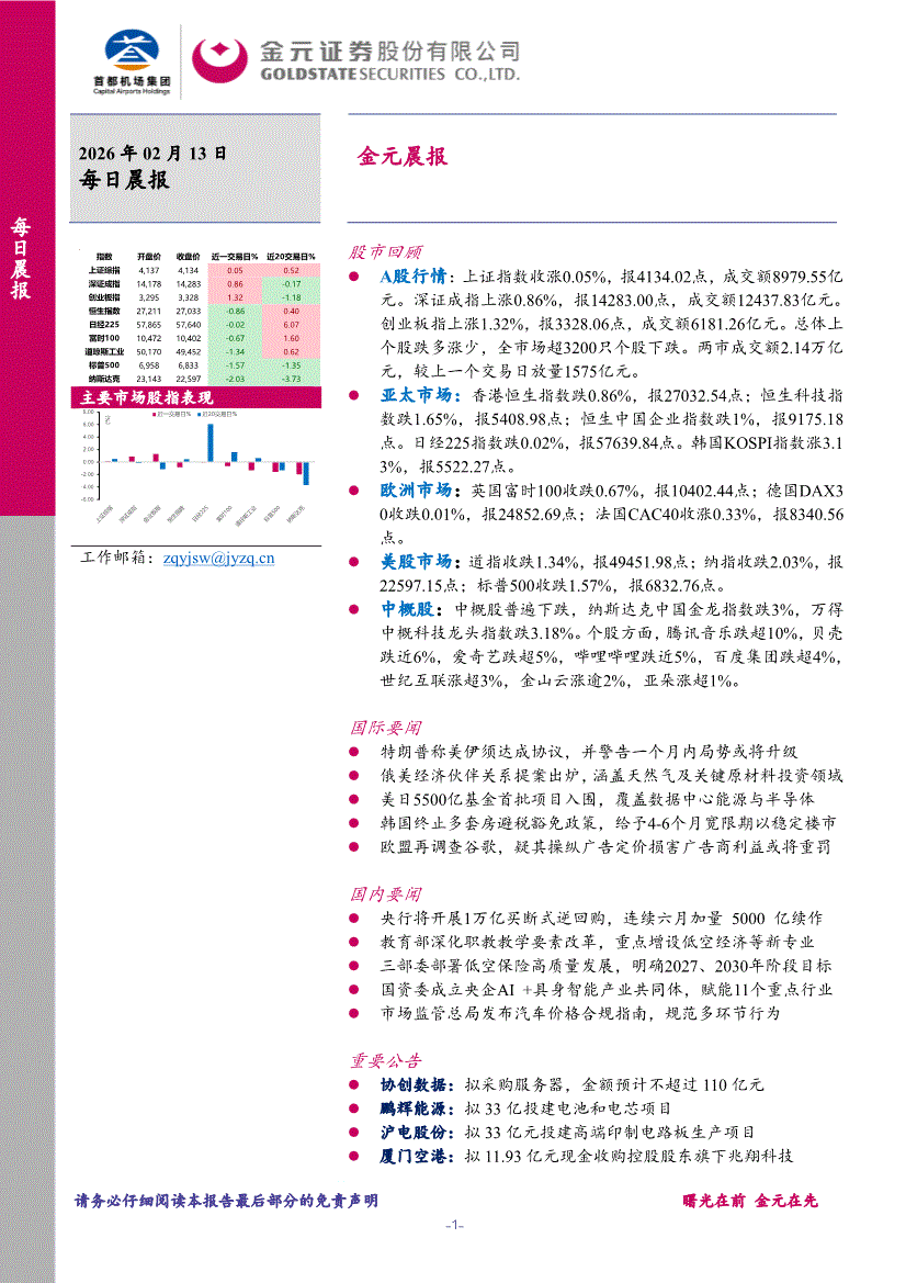 金元证券-晨报-260213