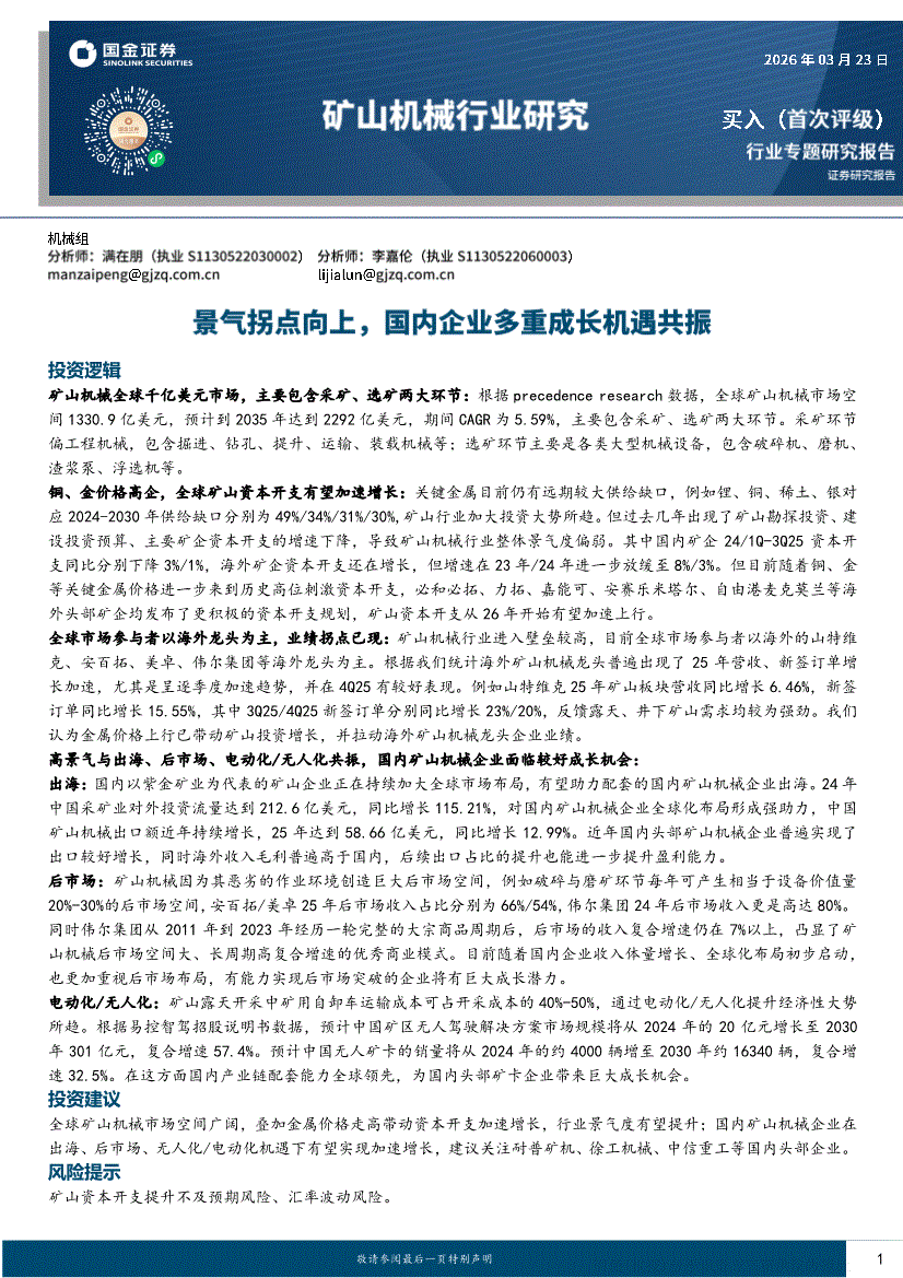矿山机械行业:国金证券-矿山机械行业:景气拐点向上,国内企业多重成长机遇共振-260323