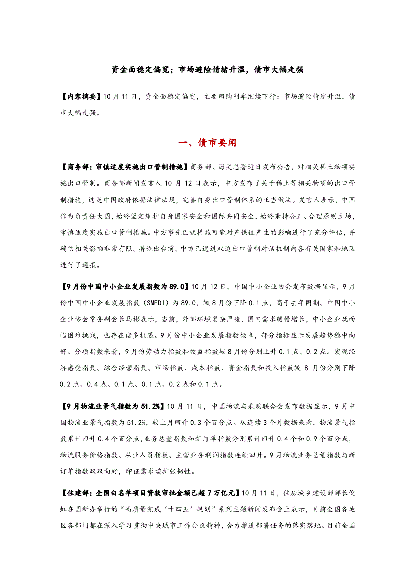 东方金诚-资金面稳定偏宽;市场避险情绪升温,债市大幅走强-251012