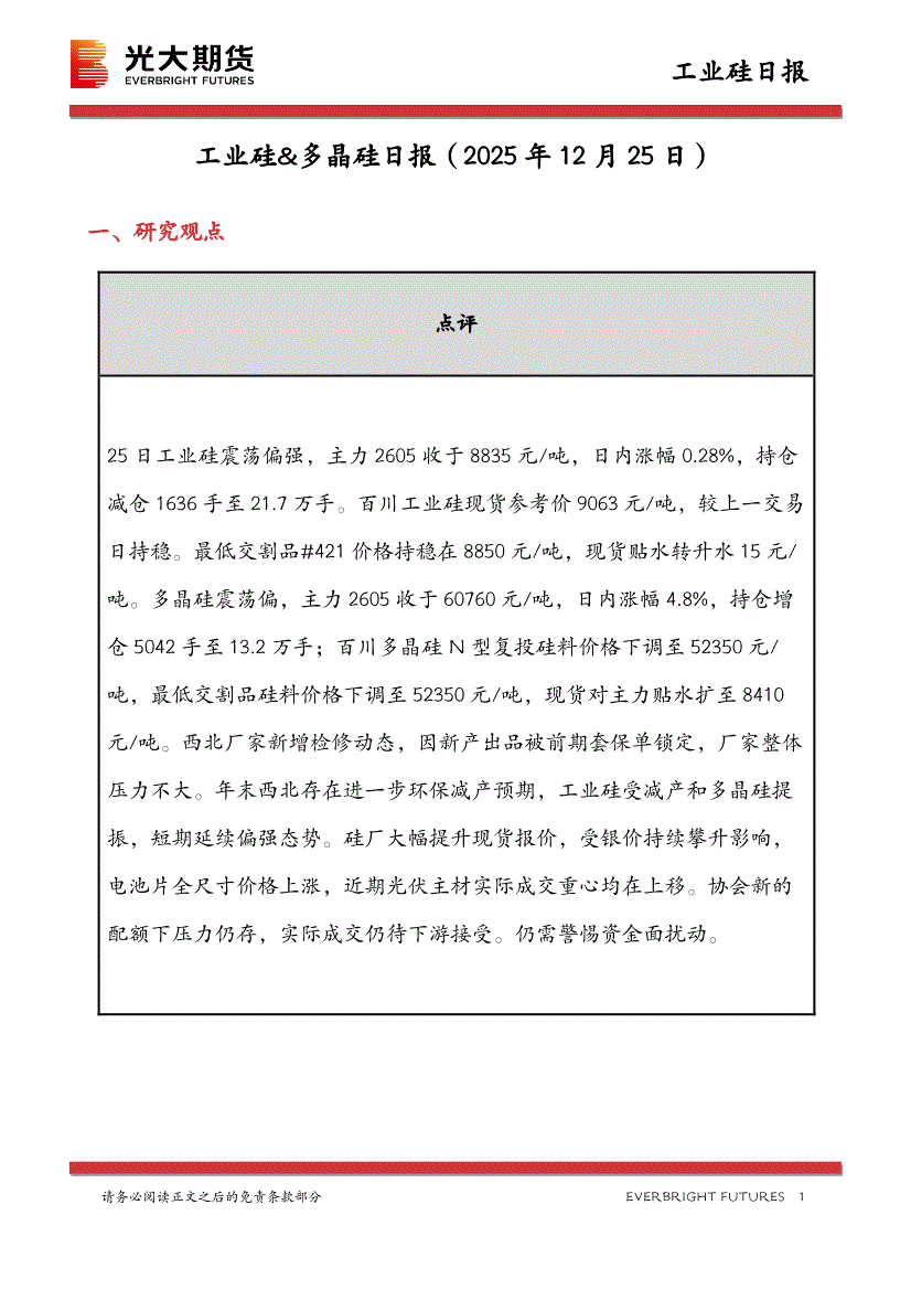 光大期货-工业硅&多晶硅日报-251225