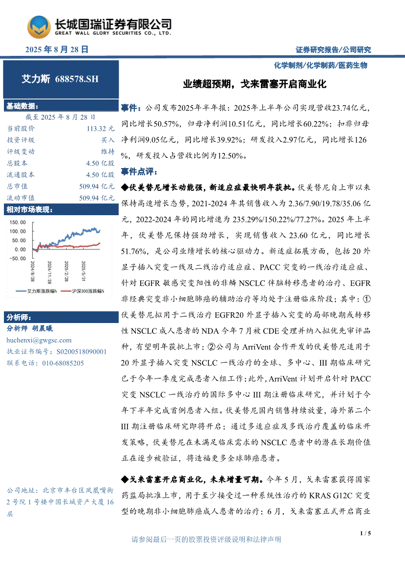 艾力斯:长城国瑞证券-艾力斯-688578-业绩超预期,戈来雷塞开启商业化-250828