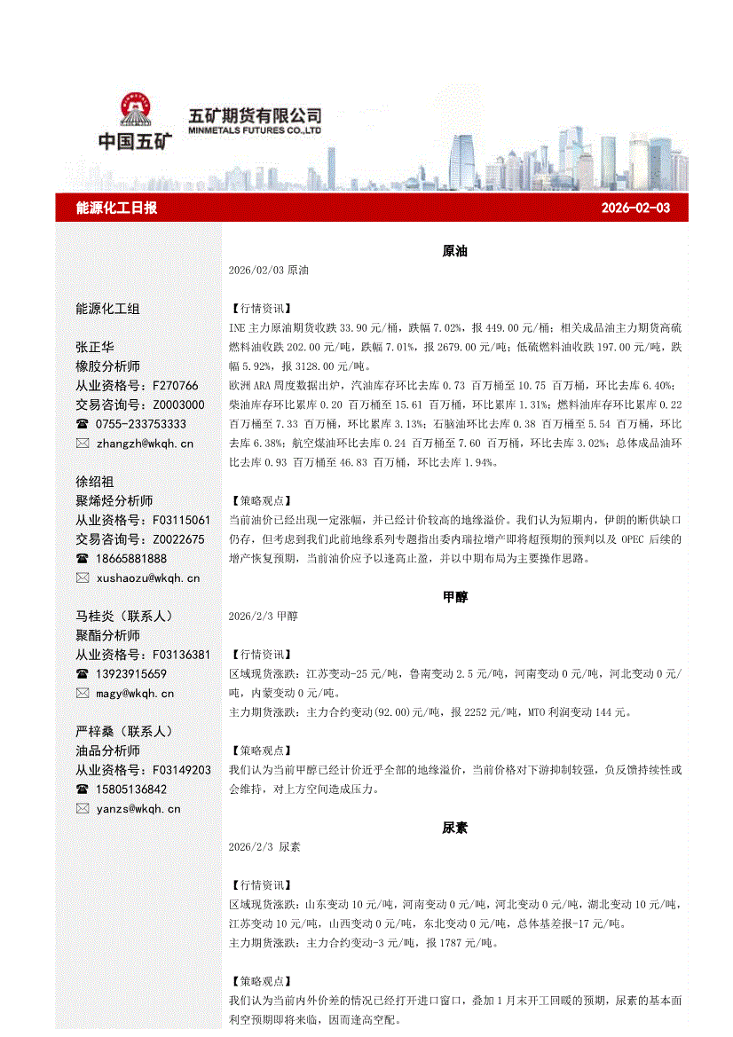 五矿期货-能源化工日报-260203