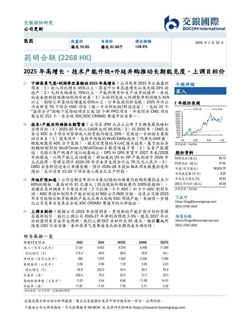 药明合联:交银国际-药明合联-2268.HK-2025年高增长,技术产能升级+外延并购推动长期能见度,上调目标价-260119
