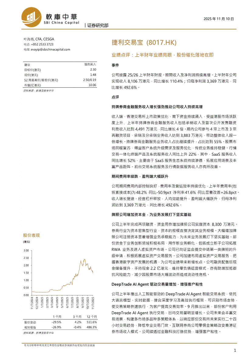 捷利交易宝:软库中华-捷利交易宝-8017.HK-业绩点评:上半财年业绩亮眼,股份催化落地在即-251110