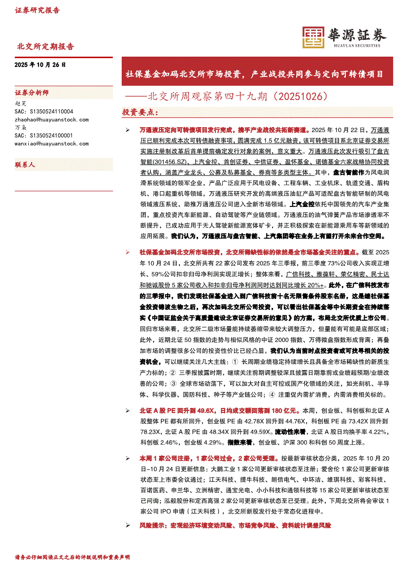 华源证券-北交所周观察第四十九期:社保基金加码北交所市场投资,产业战投共同参与定向可转债项目-251026