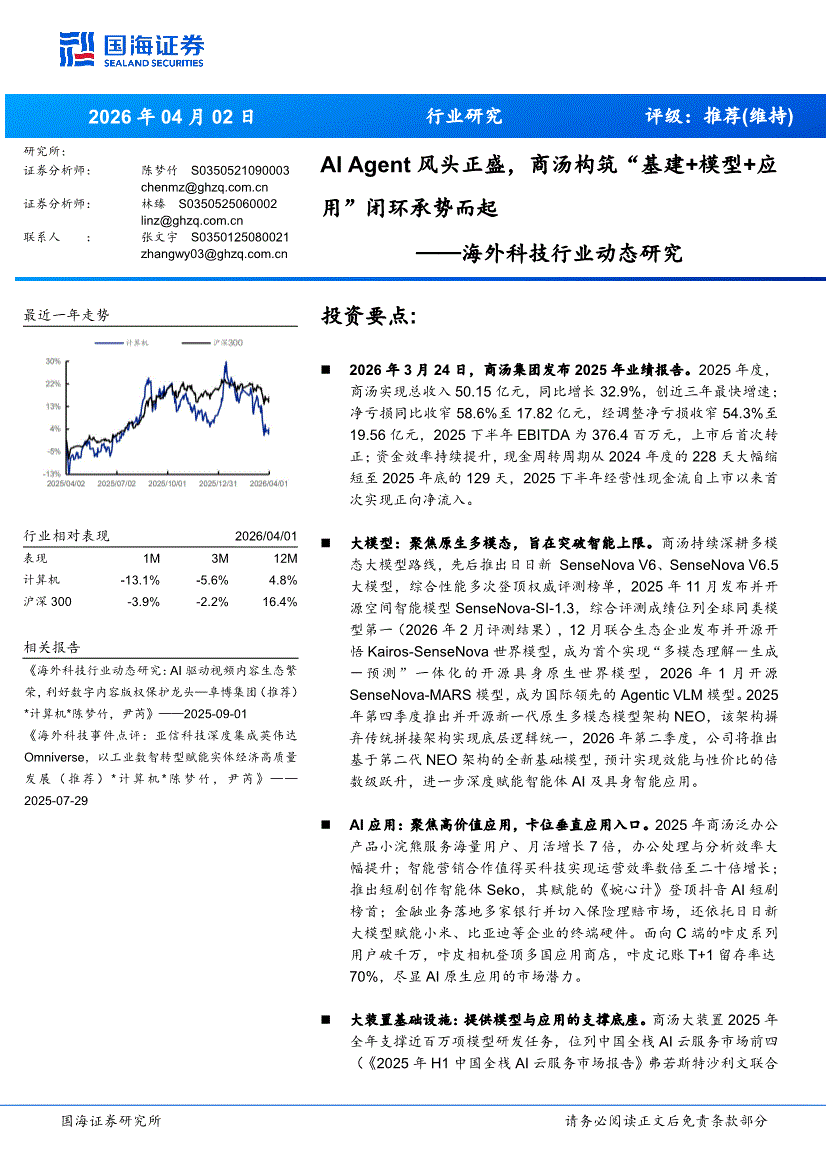 科技行业:国海证券-海外科技行业动态研究:AI Agent风头正盛,商汤构筑“基建+模型+应用”闭环承势而起-260402