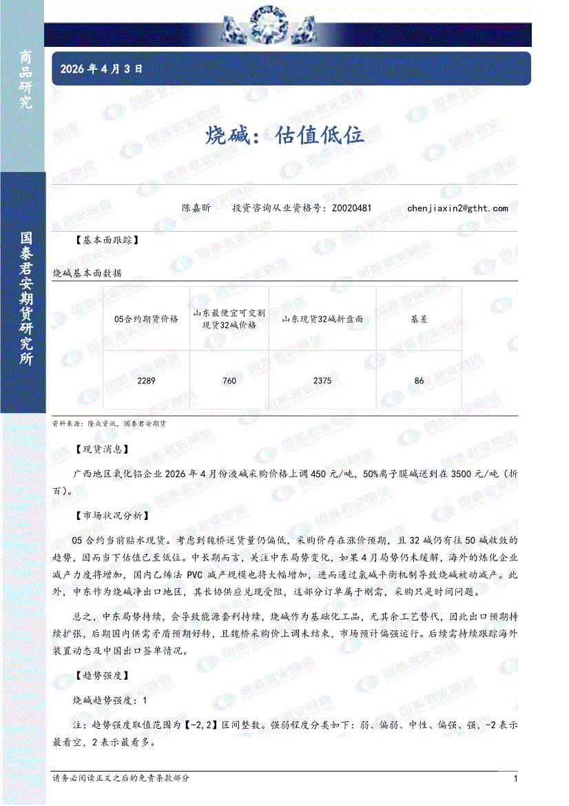 国泰君安期货-烧碱:估值低位-260403