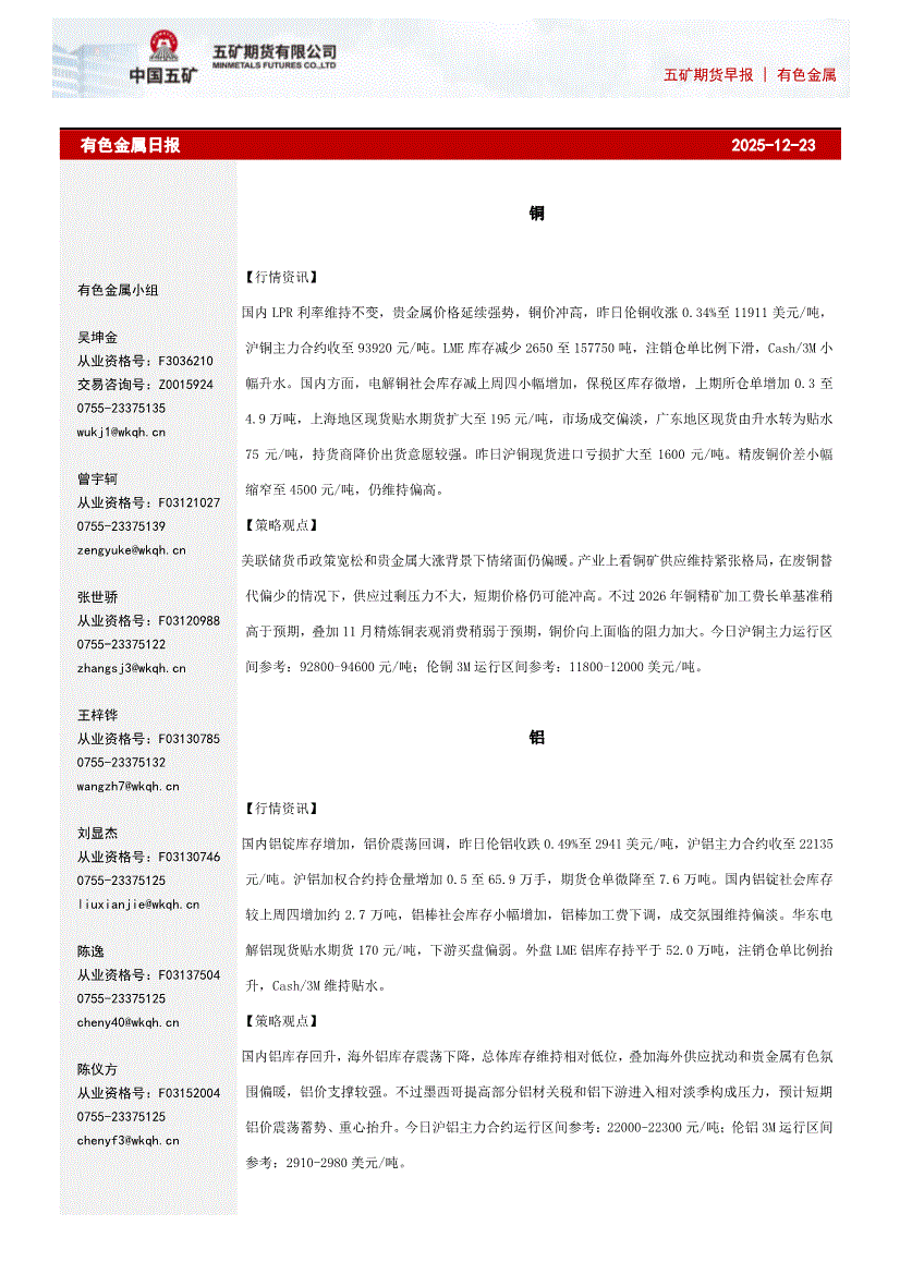 五矿期货-有色金属日报-251223