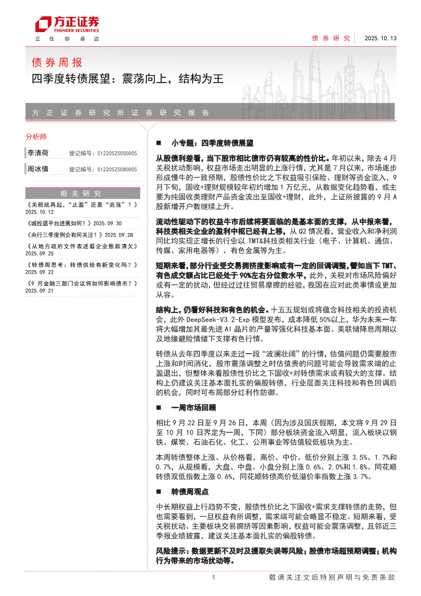方正证券-债券周报:四季度转债展望,震荡向上,结构为王-251013
