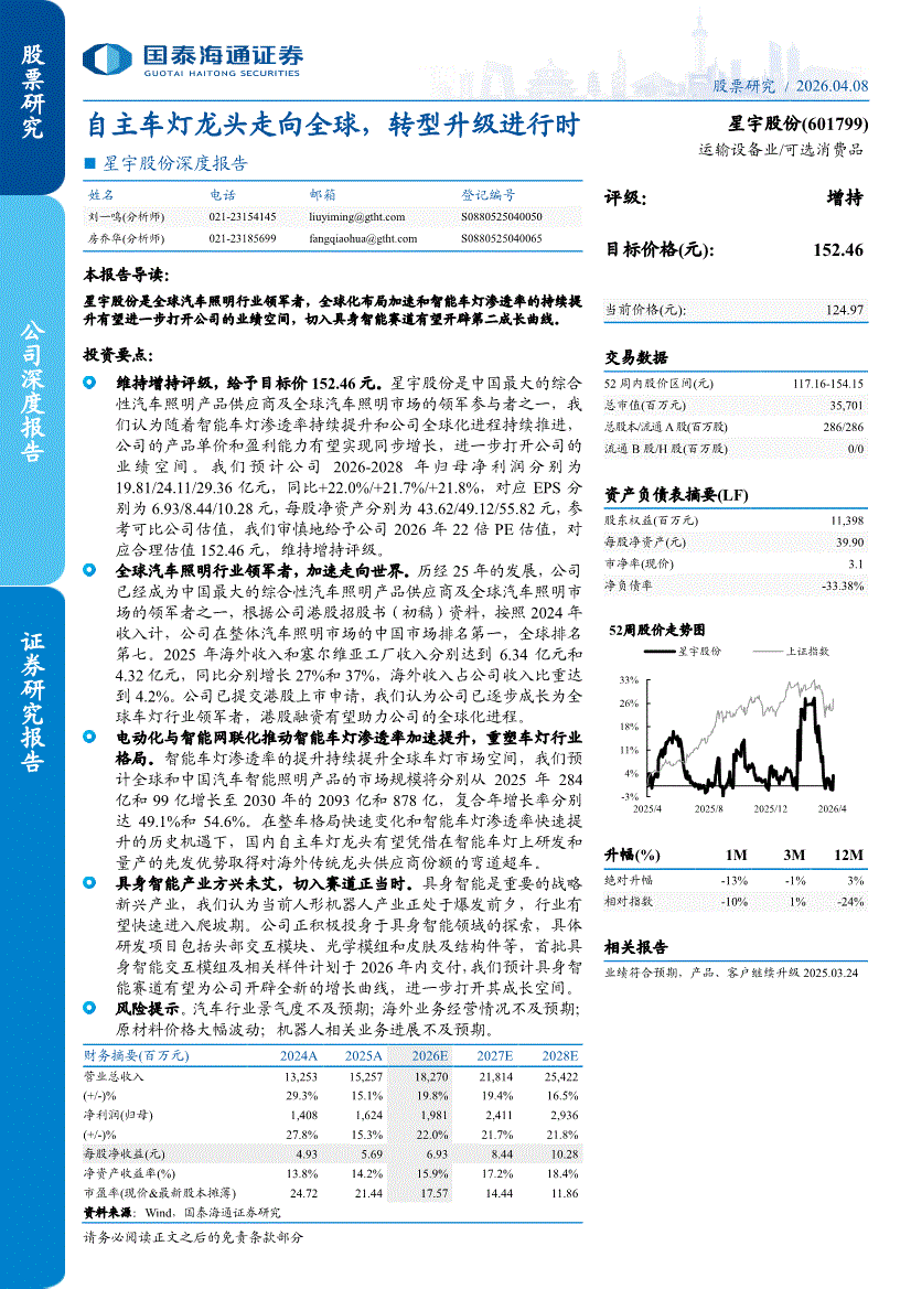 星宇股份:国泰海通证券-星宇股份-601799-深度报告:自主车灯龙头走向全球,转型升级进行时-260408